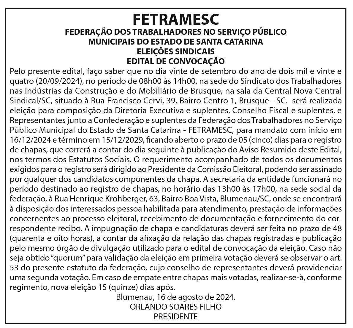 Blumenau, 16 de agosto de 2024.